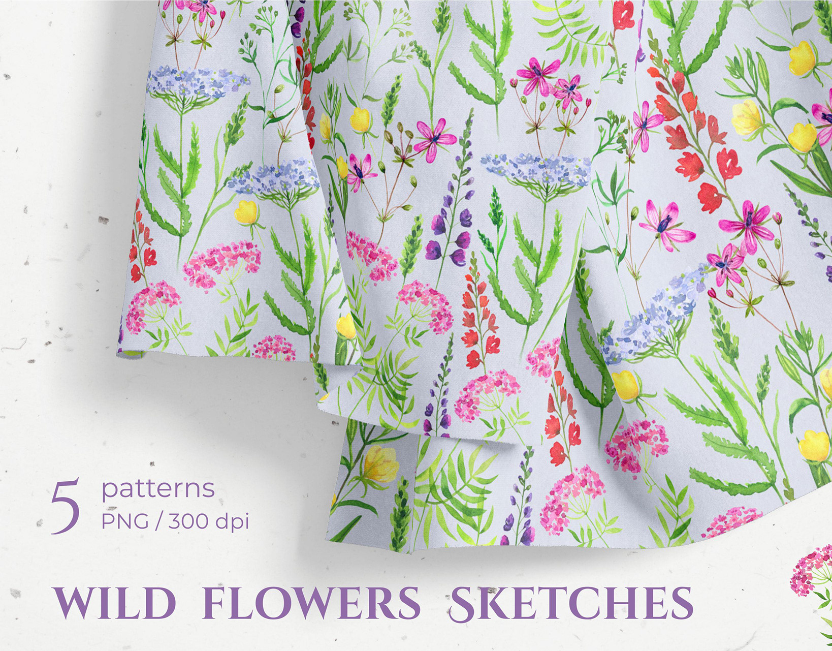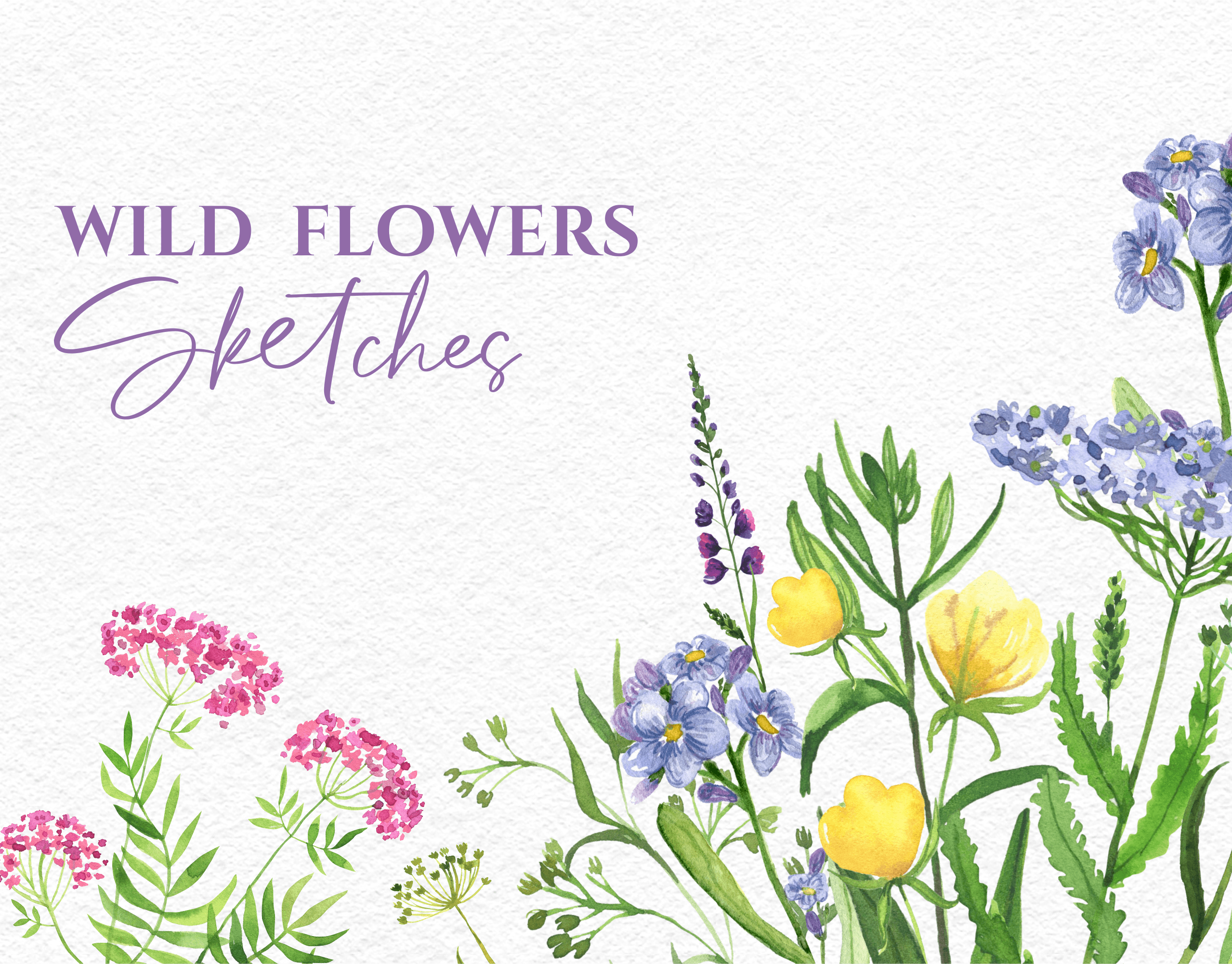 Watercolor wild flowers sketches