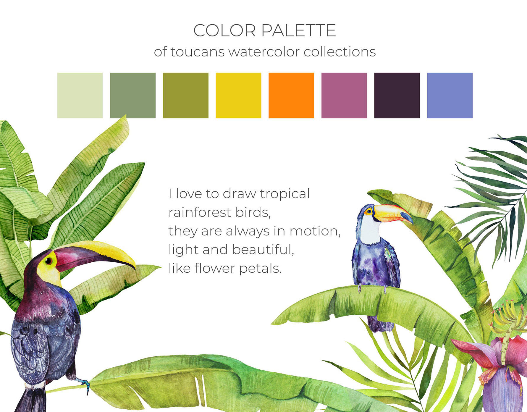 Watercolor tropical rainforest birds