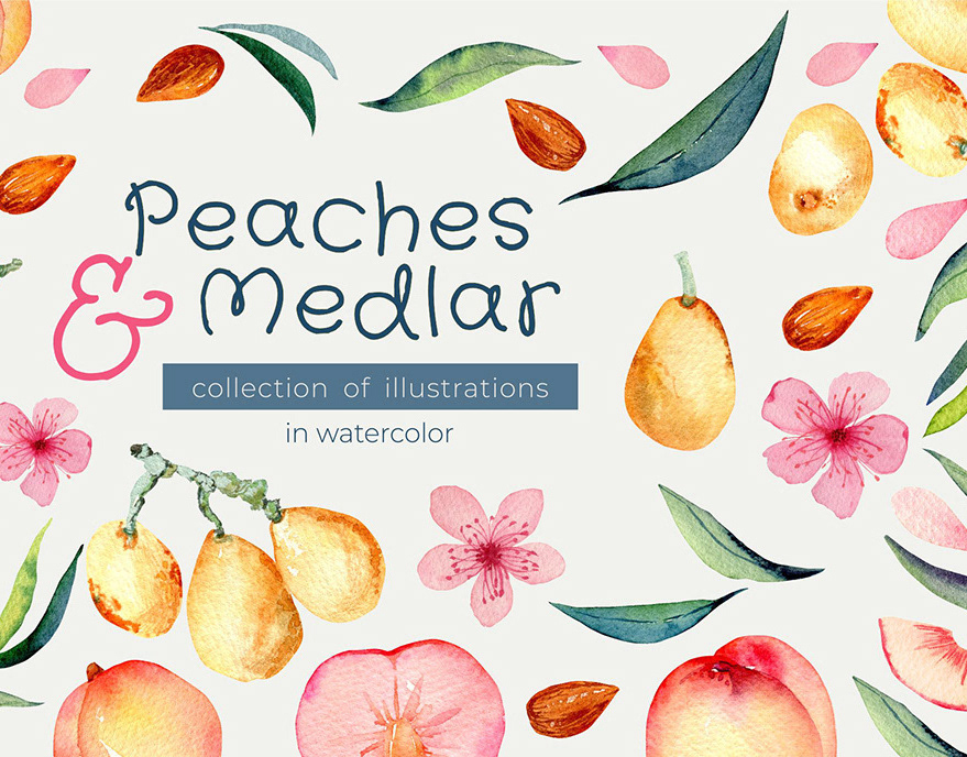 Watercolor apricots and medlar collection