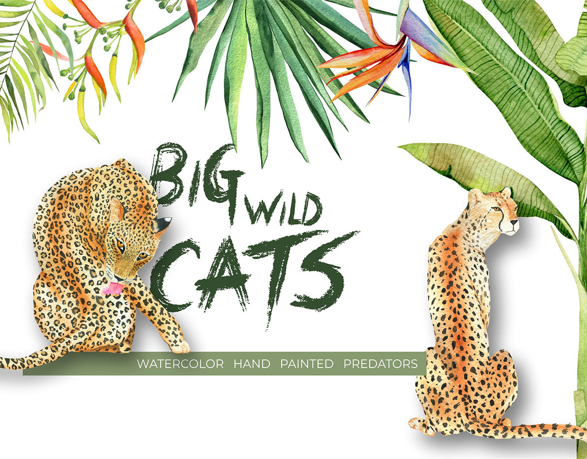 Big wild cats watercolor collection